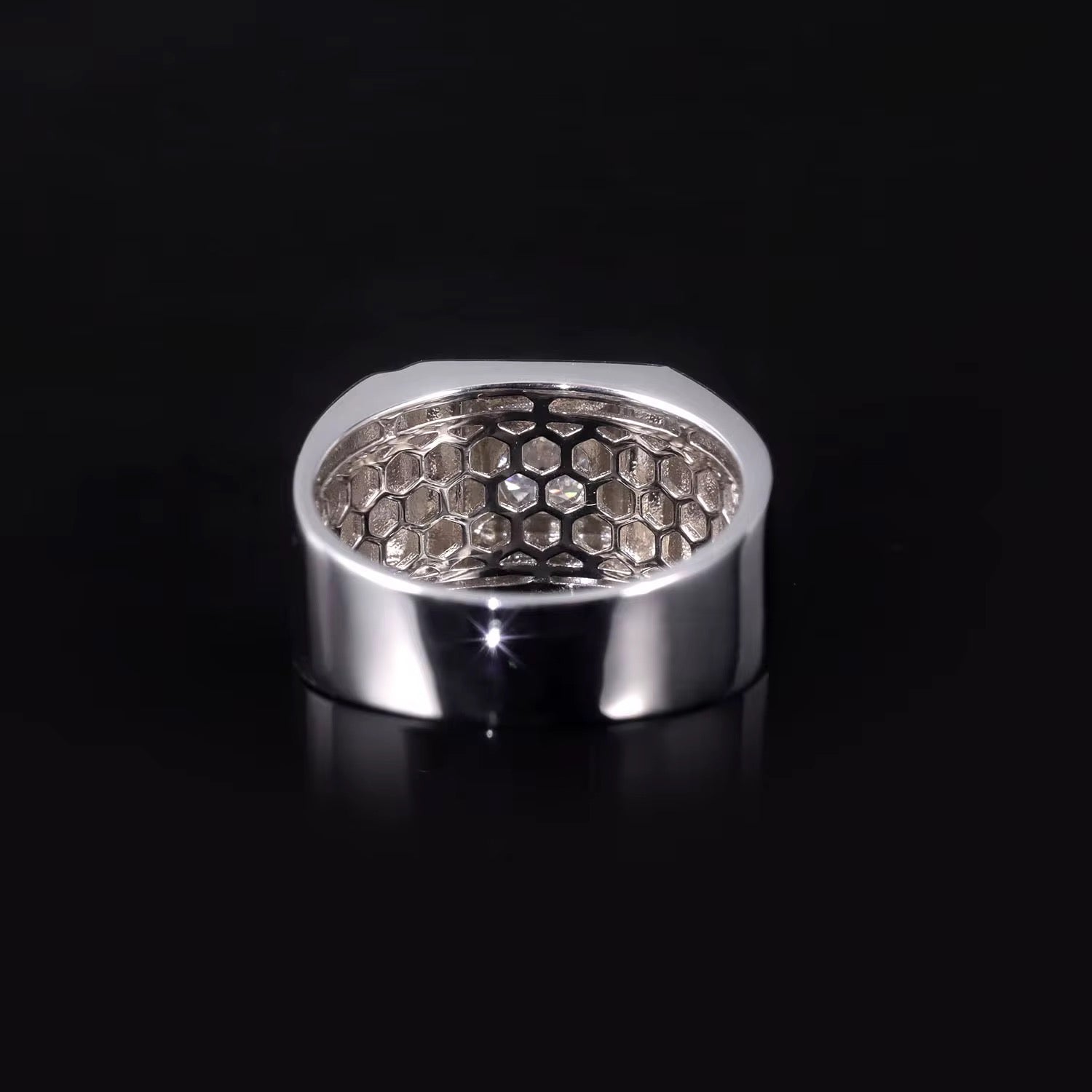 La piedra central de moissanita tiene un brillo impresionantes. La moissanita es una elección sostenible y asequible para aquellos que buscan una alternativa ética a los diamantes. Además, su dureza y durabilidad aseguran que el anillo mantendrá su belleza toda la vida.