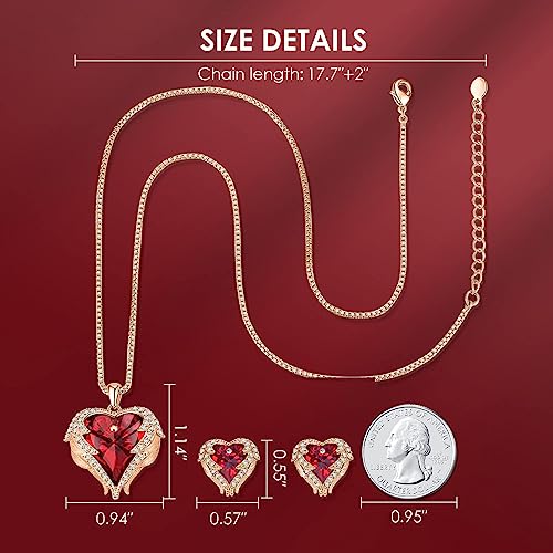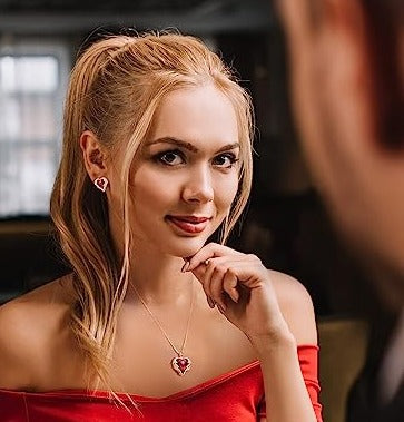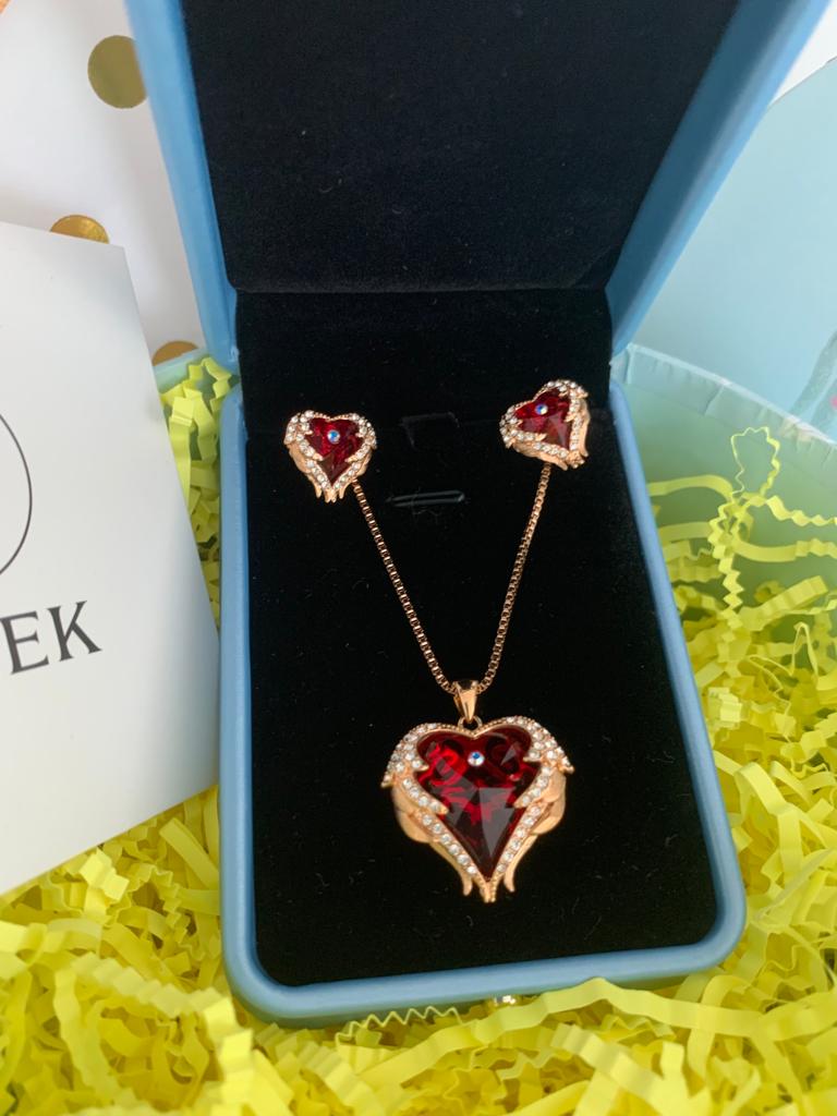 Dazzle with our exquisite set of earrings and necklace with Swarovski crystal hearts in red tone. Each piece features a unique heart design with delicate wings on the sides, adding a charming and elegant touch to your look. The vibrant red color of the Swarovski crystal captures the light spectacularly, ensuring you stand out on any occasion.