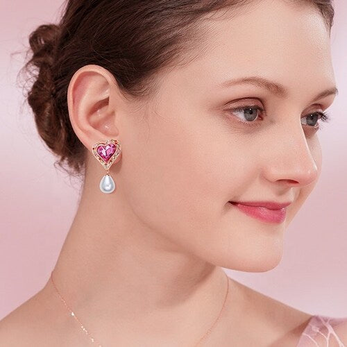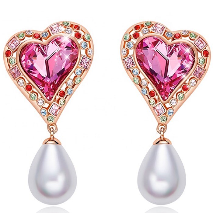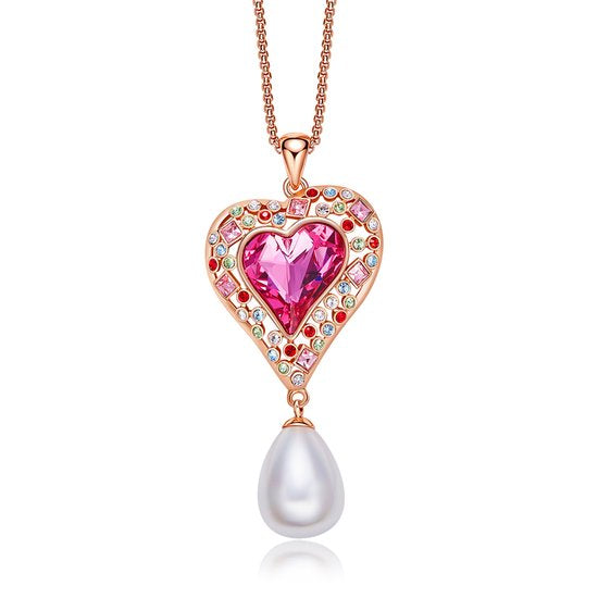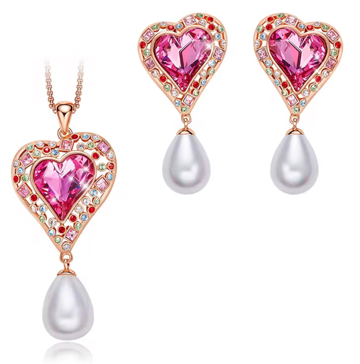 Collar y Aretes de Corazón de Cristales Swarovski y Perlas