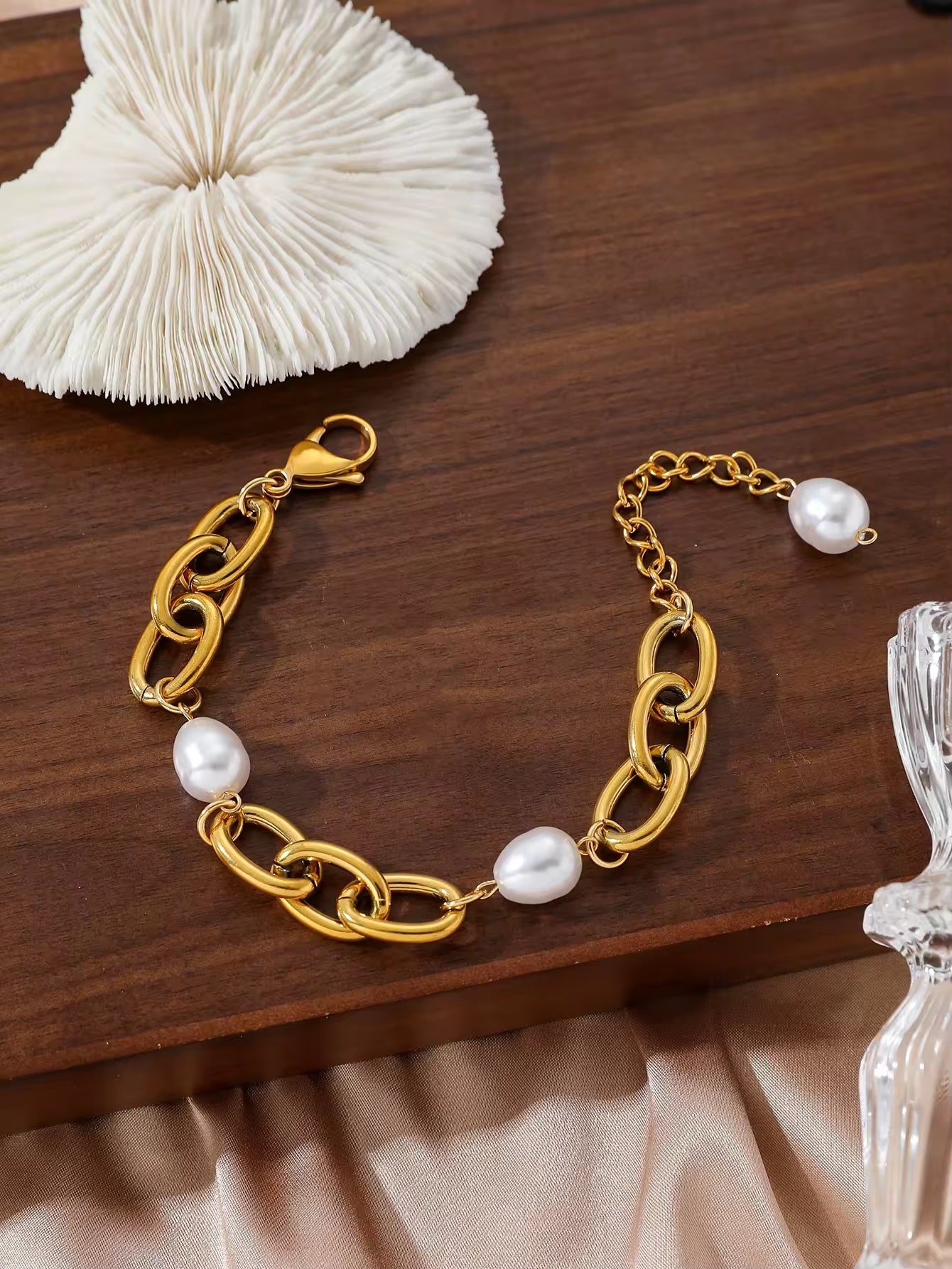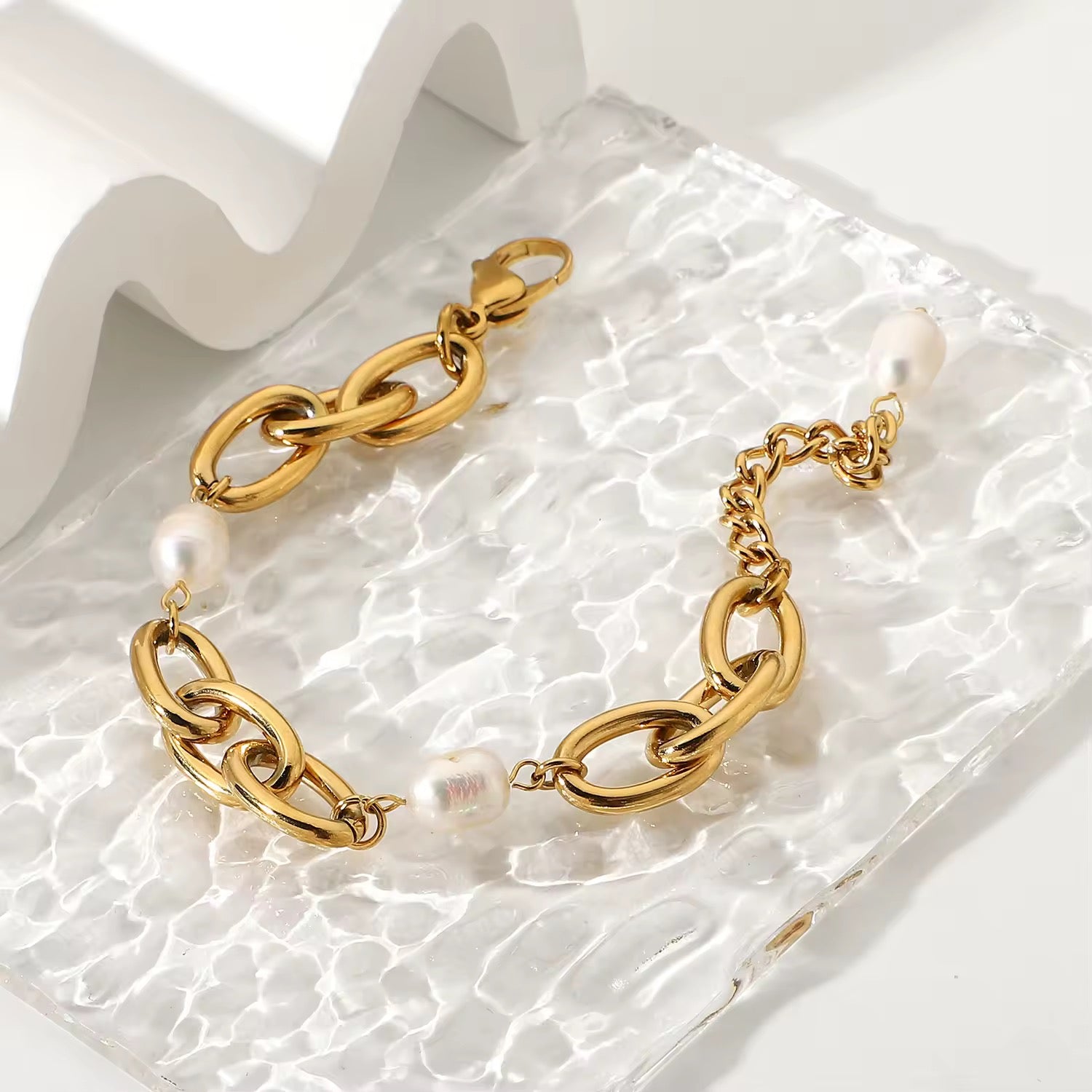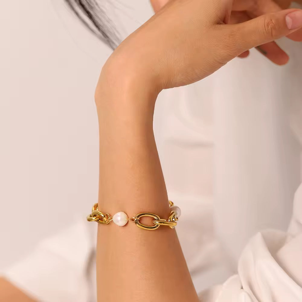 Pulsera de Eslabones con Perlas de Agua Dulce